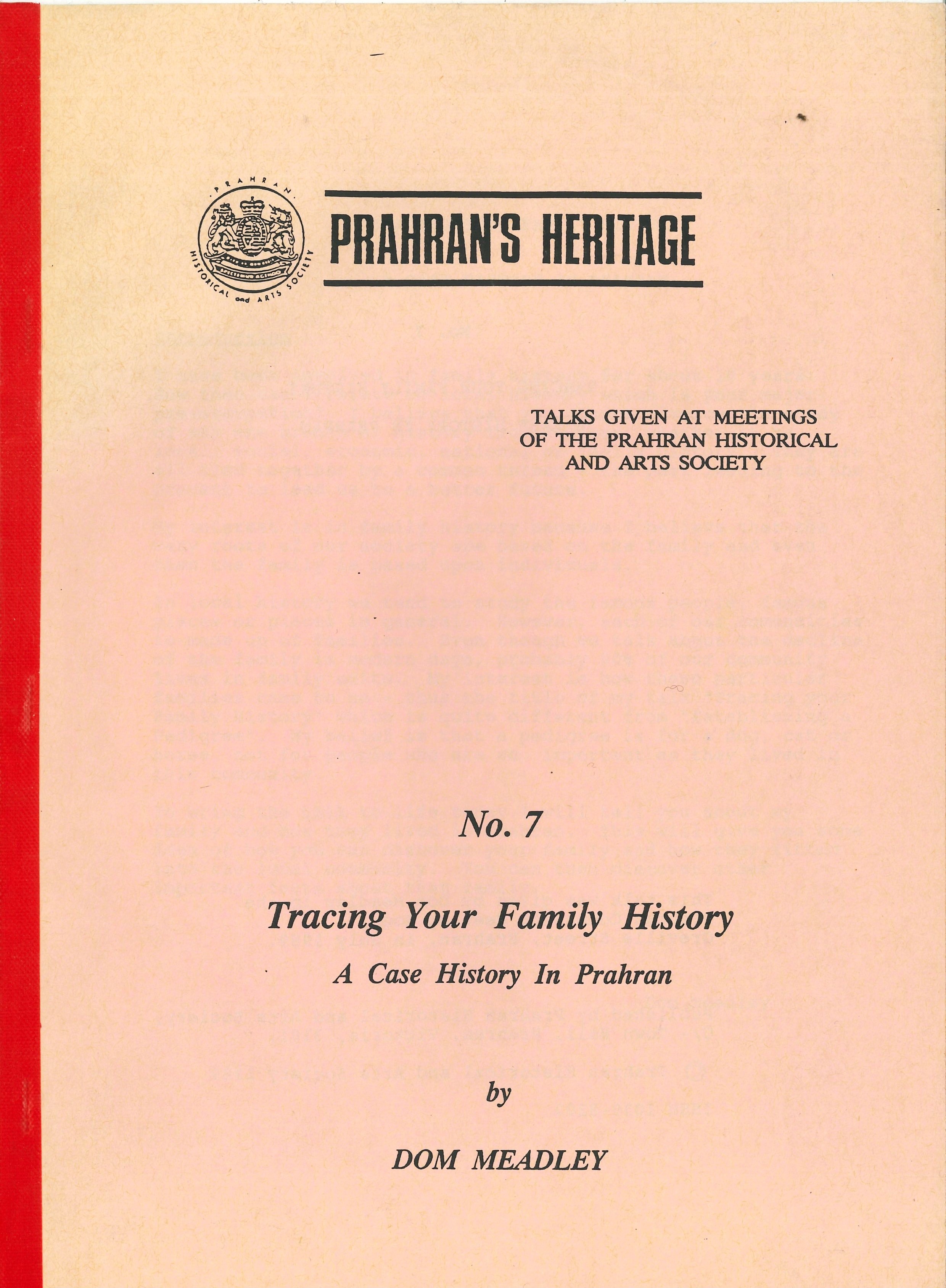 Prahran’s Heritage No. 7, Tracing Your Family History: A Case History in Prahan by Dom Meadley (Second Hand Book)